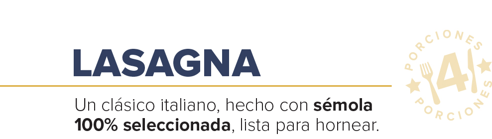 PRODUCTOS LASAGNA LISTA PARA HORNEAR Sémola de trigo candeal. Contiene: trigo. Puede contener soja y huevo. Sémola de trigo candeal. Contiene: trigo. Puede contener soja y huevo.
