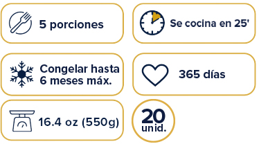 Harina de trigo, agua, grasa vacuna, sal, propionato de sodio y sorbato de potasio (conservantes), glucono delta-lactona (regulador de acidez), ácido cítrico (acidulante) y L-cisteína (mejorador de harina). Contiene: Trigo. Puede contener soja.